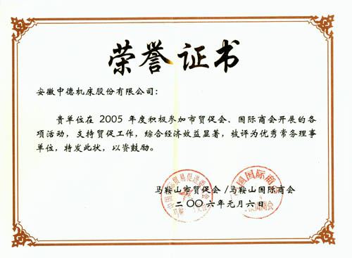 我公司獲2005年度市貿(mào)促會、國際商會優(yōu)秀常務(wù)理事單位