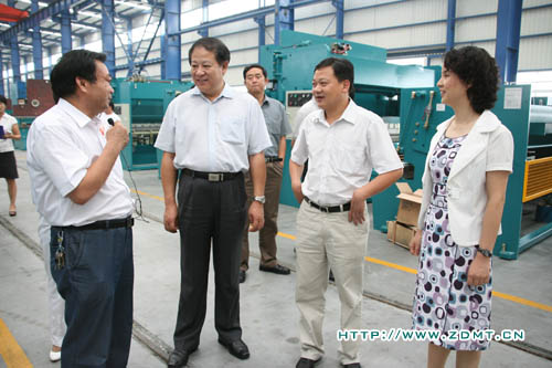 公司董事長鄭長玉向領(lǐng)導(dǎo)一行匯報(bào)了中德的發(fā)展歷程及目前的發(fā)展?fàn)顩r。重點(diǎn)介紹了我公司在車間管理和質(zhì)量監(jiān)督體制方面的完善工作,并從目前的發(fā)展局勢展望更好的發(fā)展前景。王司長也關(guān)切地向公司領(lǐng)導(dǎo)了解一些機(jī)器方面的情況,在聽到鄭董事長匯報(bào)說中德不會因目前的成績而有絲毫懈怠時(shí),王司長滿意的點(diǎn)了點(diǎn)頭。參觀過大型裝配車間后,領(lǐng)導(dǎo)一行來到了成品車間,擺放在這里的一臺雙機(jī)聯(lián)動數(shù)控折彎機(jī)迅速地吸引了大家的眼球,鄭董事長向領(lǐng)導(dǎo)介紹說這臺機(jī)器已經(jīng)經(jīng)過商檢并即將發(fā)往波蘭并非常自豪地說這位波蘭客商正是看中了中德的實(shí)力才會放心的與我們合作。隨后公司總經(jīng)理鄭小平向領(lǐng)導(dǎo)介紹了目前中德的國外代理點(diǎn)及國外銷售情況,表示中德還有非常大的外貿(mào)發(fā)展空間。
