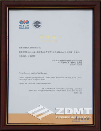 2010年7月1日下午,一場貼上“中國制造,世界的驕傲”標(biāo)簽的各行業(yè)標(biāo)志性品牌在上海世博會世界貿(mào)易中心協(xié)會GMC館高調(diào)亮相。安徽中德機(jī)床股份有限公司領(lǐng)航國內(nèi)機(jī)床行業(yè)其他品牌,作為行業(yè)代表身份出席,參加了企業(yè)亮燈儀式同時接受GMC委員會頒發(fā)的獎牌和證書,正式成為“2010年世博會世界貿(mào)易中心協(xié)會館贊助商GMC成員”,此舉在對中德機(jī)床綜合實(shí)力提升和在行業(yè)中領(lǐng)先地位的充分肯定的同時,也對我們提出了更高的要求,我們將為創(chuàng)建一個具有國際競爭力的卓越企業(yè)、鍛造一個具有百年發(fā)展的民族品牌而繼續(xù)努力!